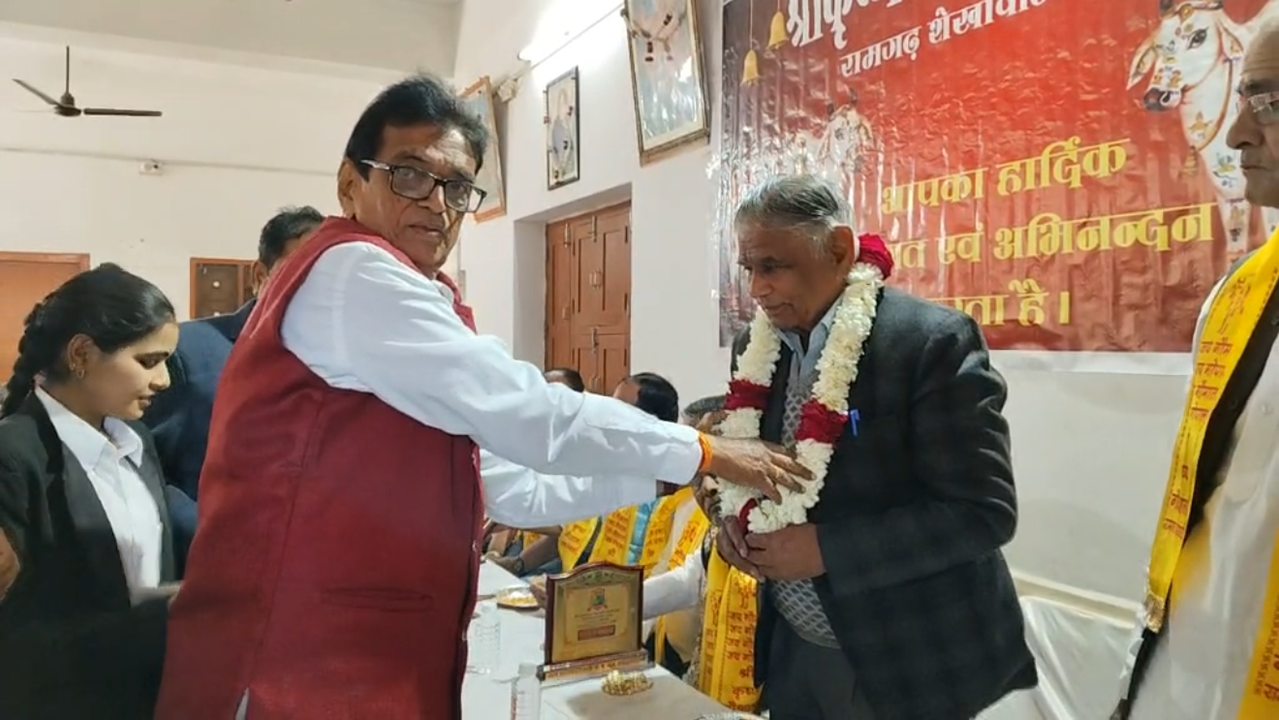 रामगढ़ शेखावाटी। श्री कृष्ण गौशाला रामगढ़ की ओर से कस्बे के बबेरवाल भवन में अभिनंदन एवं आभार समारोह का आयोजन किया गया। समारोह में 21 दिसंबर को संपन्न हुए गौशाला प्रबंधन समिति के चुनाव में सहयोग करने वाले रामगढ़ के नागरिकों एवं गौशाला कर्मियों का आभार व्यक्त कर सम्मान किया गया। साथ ही रामगढ़ के मूल निवासी एवं सीकर न्यायालय के वरिष्ठ अधिवक्ता दामोदर प्रसाद माटोलिया के सीकर बार एसोसिएशन के अध्यक्ष बनने पर गौशाला परिवार एवं नगर की विभिन्न संस्थाओं द्वारा भव्य नागरिक अभिनंदन किया गया।