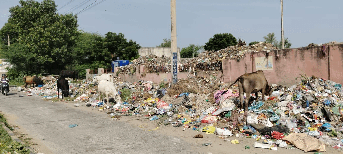 कचरे में मृत पशु, प्लास्टिक और सड़ा-गला कचरा