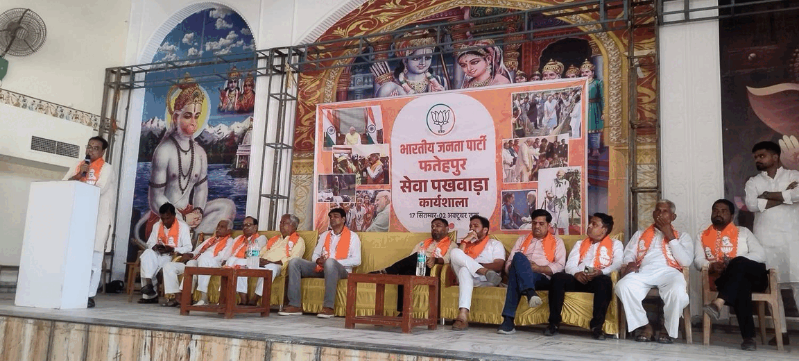 फतेहपुर शेखावाटी। प्रधानमंत्री नरेंद्र मोदी के जन्मदिवस के उपलक्ष में भारतीय जनता पार्टी द्वारा देश भर में आयोजित किया जा रहे सेवा पखवाड़ा को लेकर रविवार को कस्बे के त्रिवेणी भवन में भाजपा शहर मंडल भाजपा देहात मंडल एवं भाजपा रामसीसर मंडल की सामूहिक बैठक का आयोजन किया गया। बैठक में विधानसभा प्रभारी रमेश जलधारी मुख्य वक्ता के रूप में उपस्थित रहे। भाजपा शहर मंडल अध्यक्ष अमित तिवारी ने बताया कि 15 सितंबर से लेकर 2 अक्टूबर तक सेवा पखवाड़ा आयोजित होगा। इस दौरान रक्तदान शिविर साफ सफाई पौधारोपण सहित कई तरह के सेवा कार्य किए जाएंगे। इस दौरान वक्ताओं ने कहा कि प्रधानमंत्री नरेंद्र मोदी का 17 सितंबर को जन्मदिवस है एवं 2 अक्टूबर को महात्मा गांधी एवं लाल बहादुर शास्त्री जयंती है। वक्ताओं ने कहा कि सेवा पखवाड़े में अच्छे कार्य करने हैं। इस दौरान कार्यकर्ताओं को पूरी रूपरेखा बताते हुए जिम्मेदारी दी गई। बैठक में विधानसभा प्रभारी रमेश जलधारी, भाजपा जिला महामंत्री रामावतार रूंथला, सेवा पखवाड़ा संयोजक विकास भास्कर, जिला मंत्री सज्जन, फतेहपुर शहर मंडल महामंत्री रमेश माटोलिया, प्रमोद महरिया, जयराम मिश्रा, मोहन बरवड़, देहात मंडल अध्यक्ष कैलाश चौधरी, ओम प्रकाश बियाला, आशु सिंह शेखावत, कर्मा सैनी, पार्षद राजू देवी जांगिड़ राकेश सोनी, अंकित शर्मा, विजयपाल हुड्डा, नरेंद्र हुड्डा, प्रमोद जोशी, अशोक बोचीवाल, राजू चोटिया, बाबूलाल कुल्हरी, गोविंद शर्मा, मूलाराम दायमा, मनफूल गोदारा,नितिन जांगिड़, मोहम्मद अली,सहित बड़ी संख्या में लोग मौजूद रहे।
