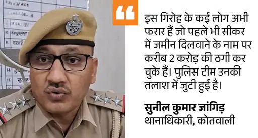 सीकर में 8.50 बीघा जमीन की मालकिन दिल्ली में रहती है। आरोपियों ने बताया कि वह जमीन बेचना चाहती है। फिर फर्जी मालकिन से मिलवाया और जमीन के फेक कागजात दिखाकर ठेकेदार से 90 लाख रुपए ठग लिए।