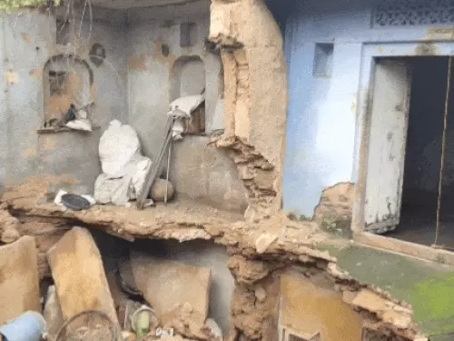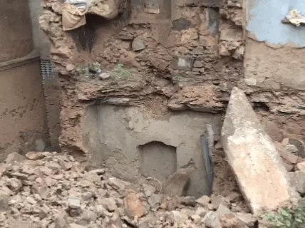 सीकर के अजीतगढ़ में मकान गिरा:पत्थर गिरने लगे तो लोग बाहर निकल गए,किराए पर रहते थे