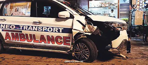 ट्रैफिक पुलिस की गुमटी से टकराई एंबुलेंस, हादसा टला